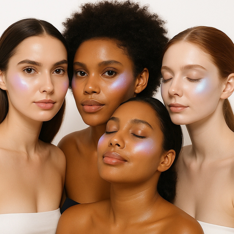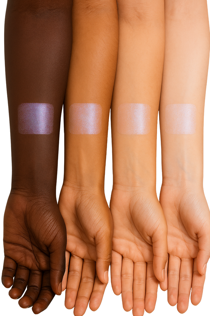 Because of its crystal structure, the finish shifts depending on skin tone and lighting. It appears blue-silver-violet on some and more neutral on others. That’s part of the magic—it’s made for all.